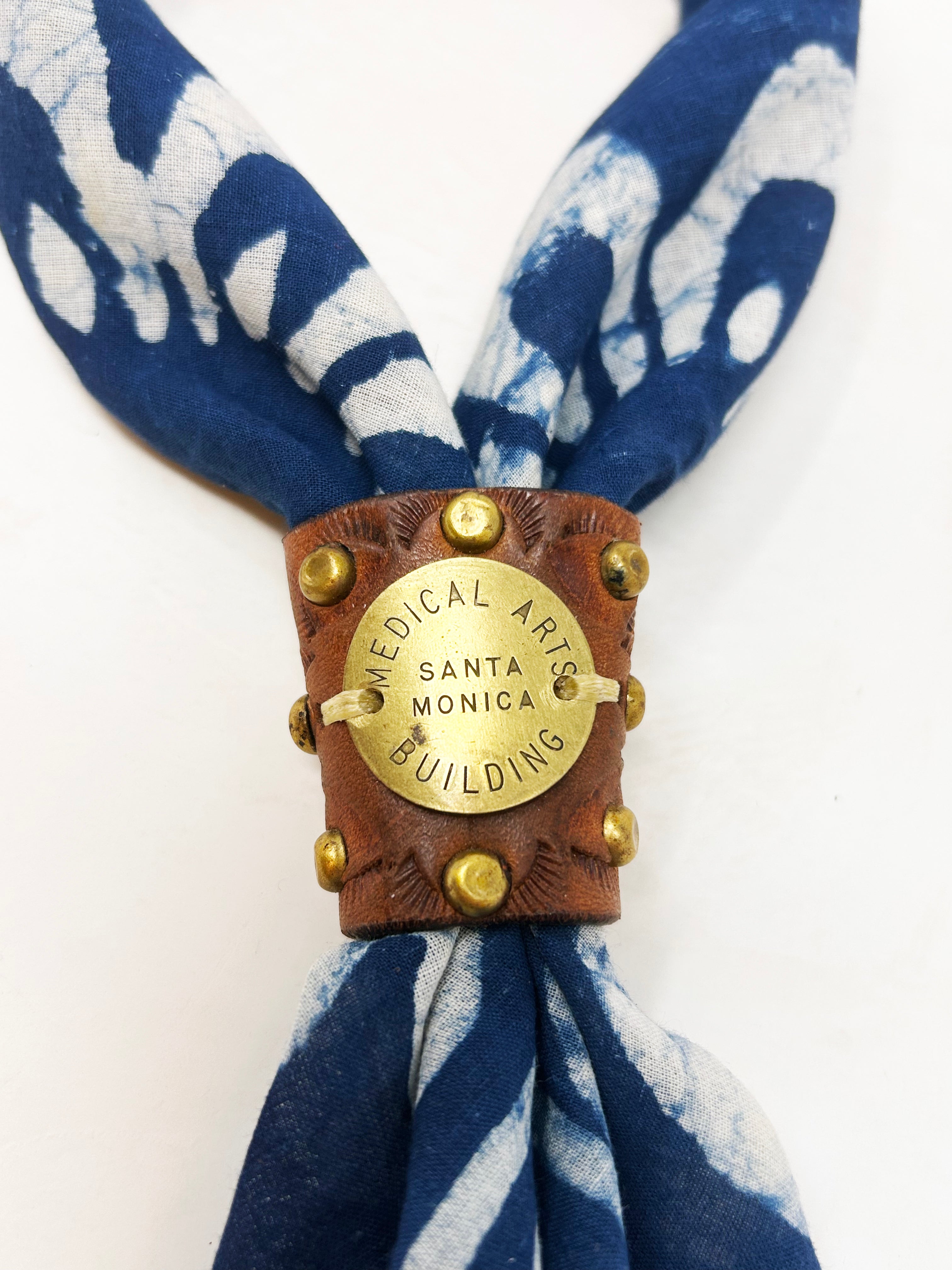Each Busto Bandana Slider is a singular piece—handmade from rich leather and embellished with vintage coins, stones, and unique hardware. Designed to hold your bandana in place with effortless style, they bring a rugged refinement to any look. No two are alike. From turquoise accents to antique brass and hand-etched details, every slider tells its own story. Crafted in the spirit of heritage, individuality, and the open road.