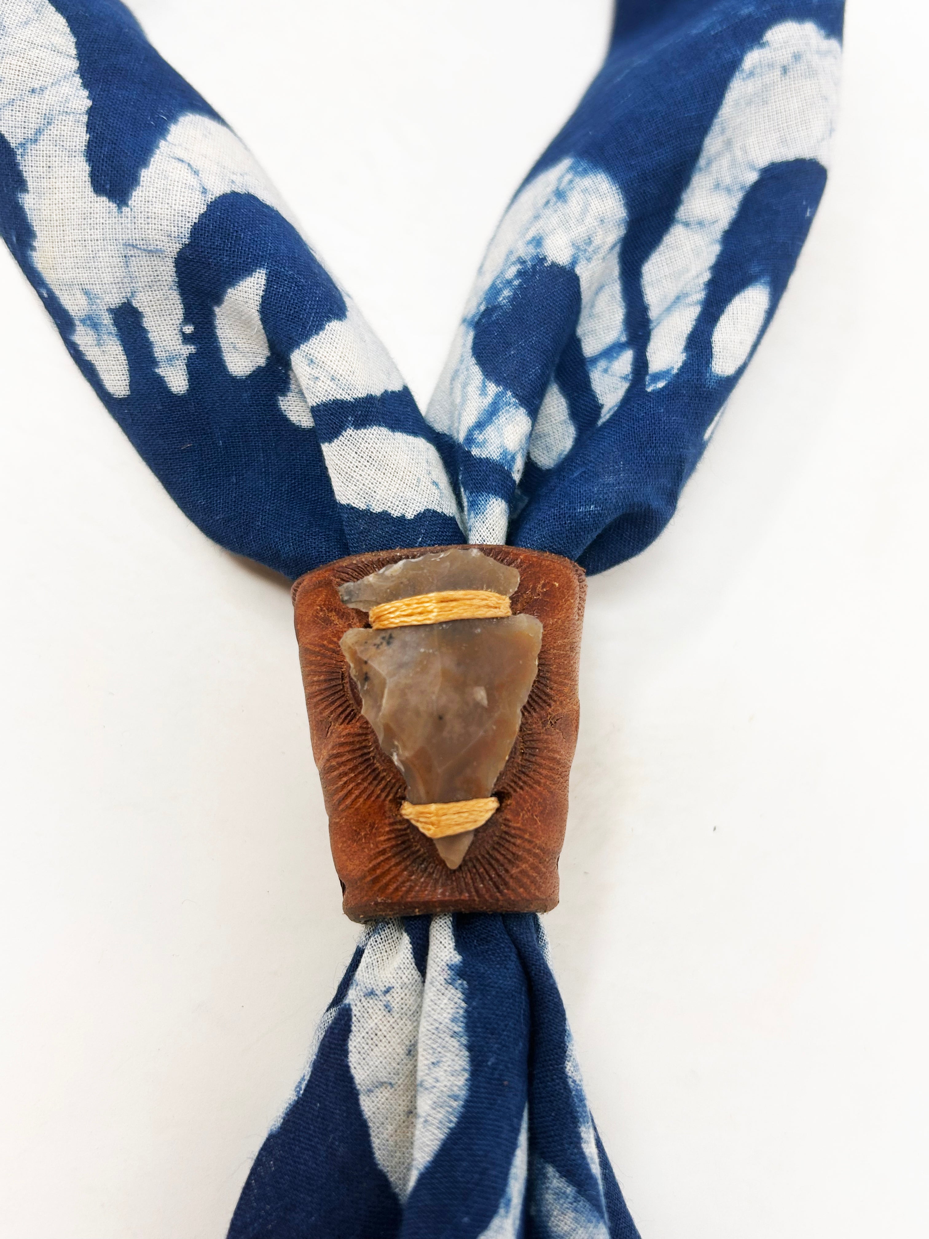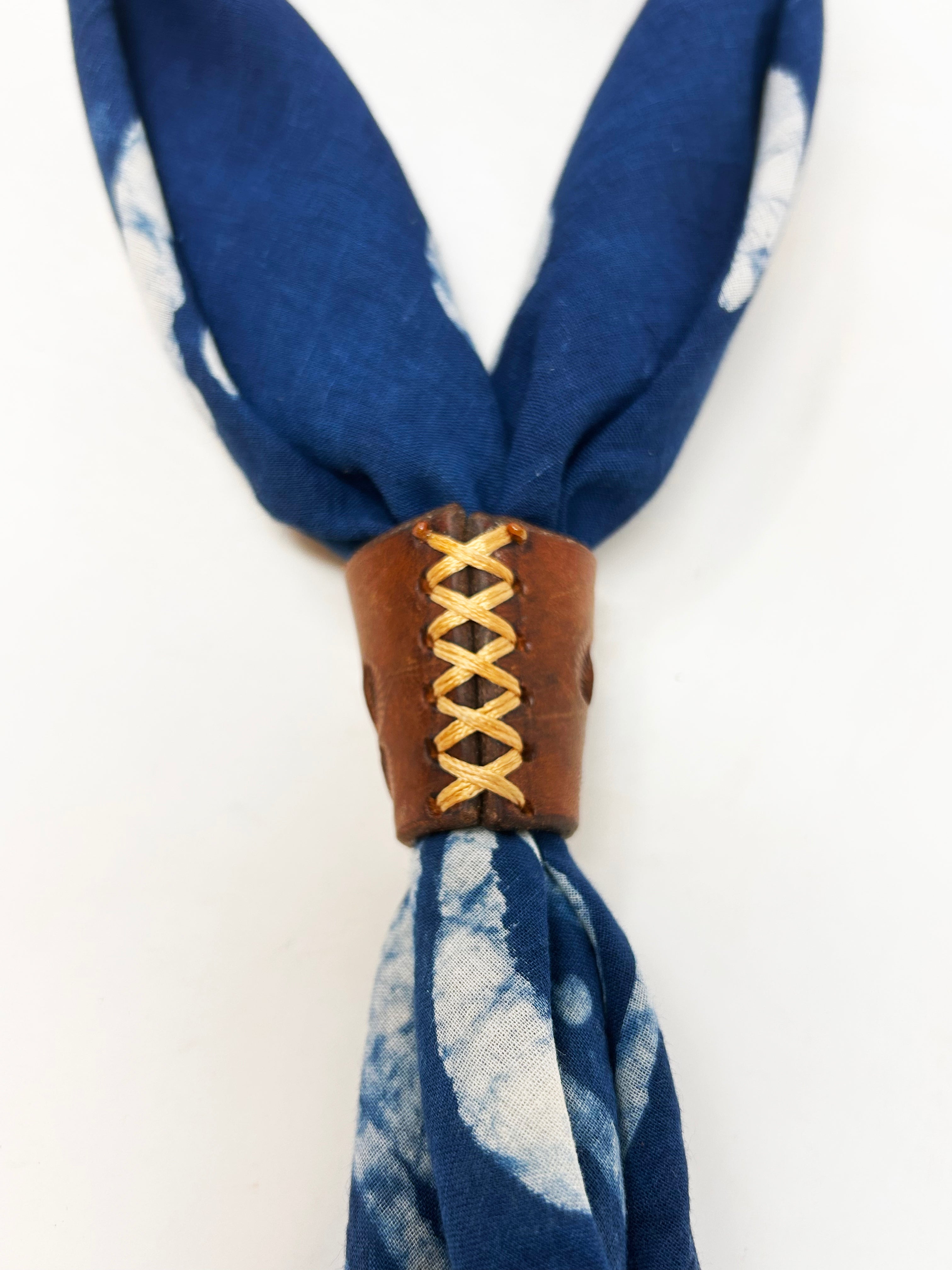 Each Busto Bandana Slider is a singular piece—handmade from rich leather and embellished with vintage coins, stones, and unique hardware. Designed to hold your bandana in place with effortless style, they bring a rugged refinement to any look. No two are alike. From turquoise accents to antique brass and hand-etched details, every slider tells its own story. Crafted in the spirit of heritage, individuality, and the open road.