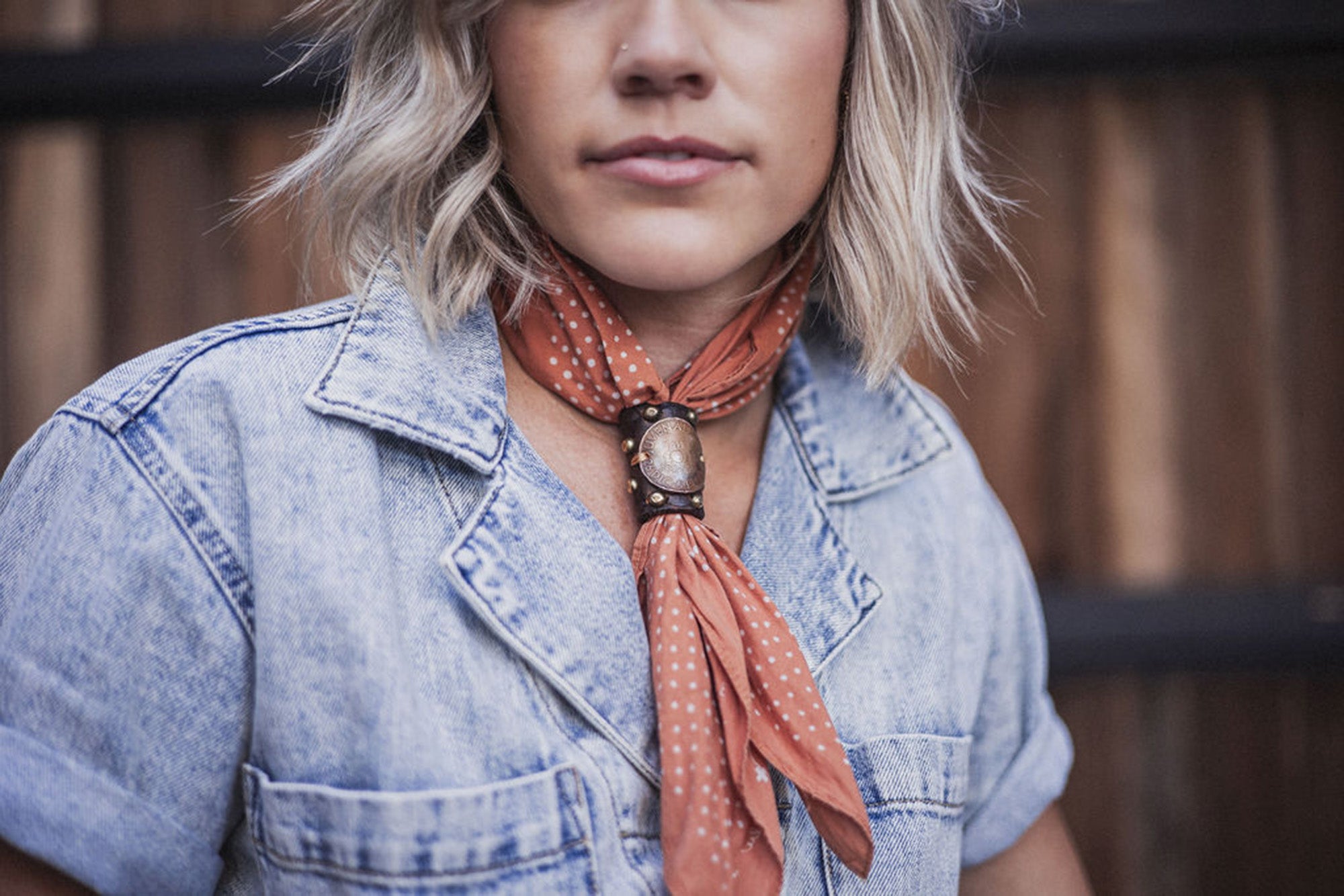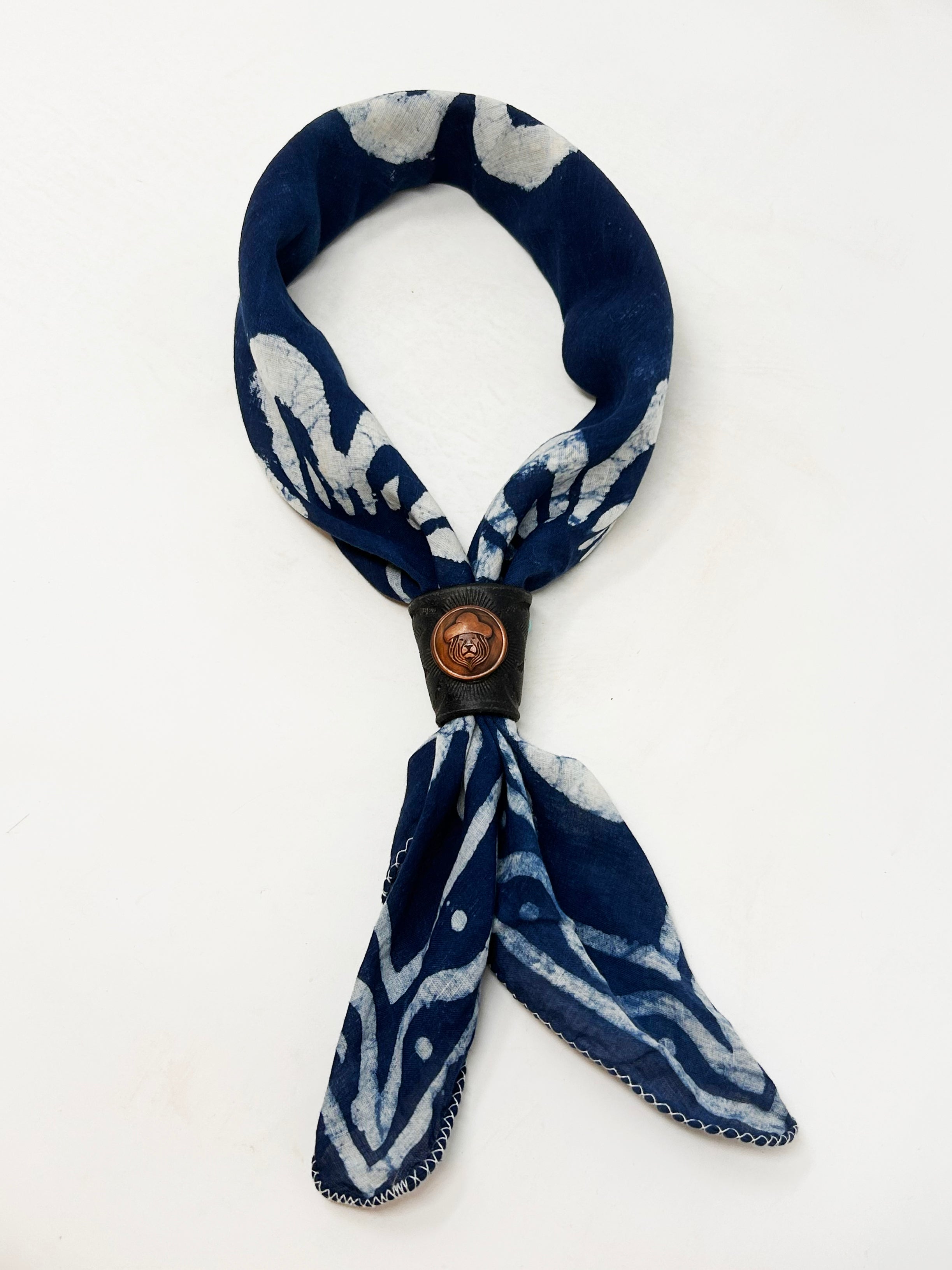 Each Busto Bandana Slider is a singular piece—handmade from rich leather and embellished with vintage coins, stones, and unique hardware. Designed to hold your bandana in place with effortless style, they bring a rugged refinement to any look. No two are alike. From turquoise accents to antique brass and hand-etched details, every slider tells its own story. Crafted in the spirit of heritage, individuality, and the open road.