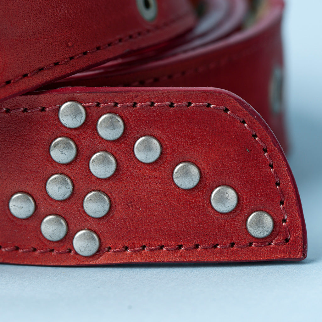 For those who lead with color and confidence. The Red Horizon is handcrafted from vibrant crimson leather, detailed with hand-set rivets and finished with an ornate interior lining—a private flash of flair. Built to age with grace, it’s a belt that stands out without trying too hard.