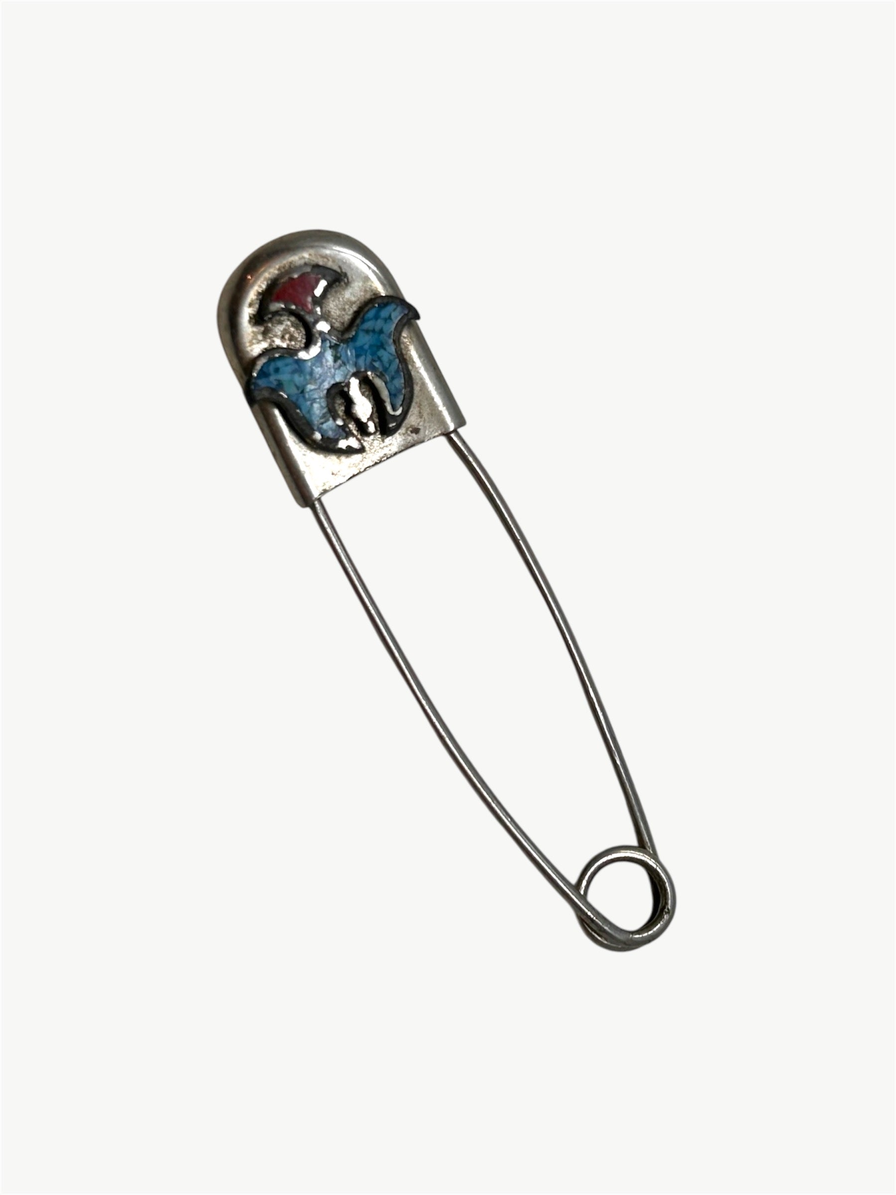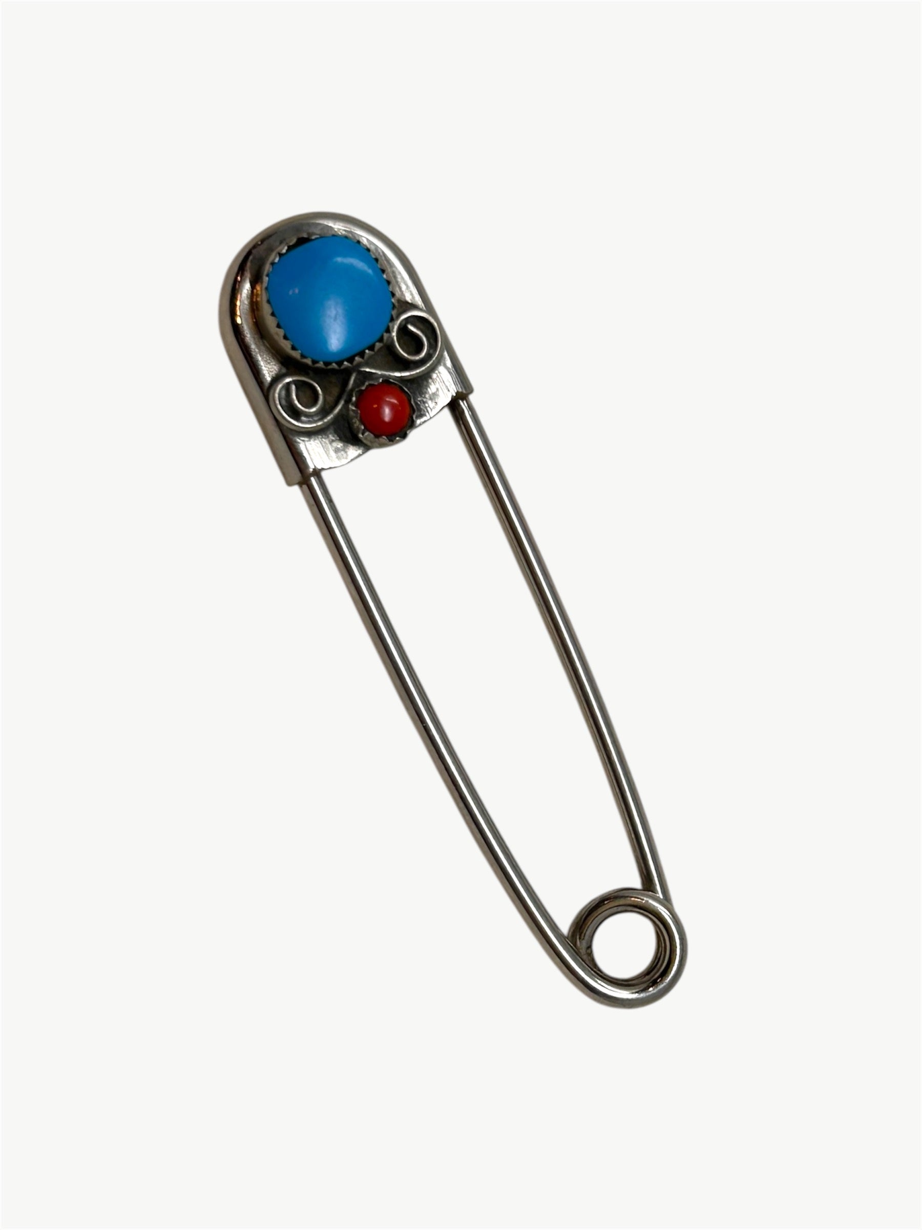 Vintage Turquoise Safety Pin Brooch