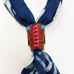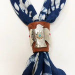 Each Busto Bandana Slider is a singular piece—handmade from rich leather and embellished with vintage coins, stones, and unique hardware. Designed to hold your bandana in place with effortless style, they bring a rugged refinement to any look. No two are alike. From turquoise accents to antique brass and hand-etched details, every slider tells its own story. Crafted in the spirit of heritage, individuality, and the open road.