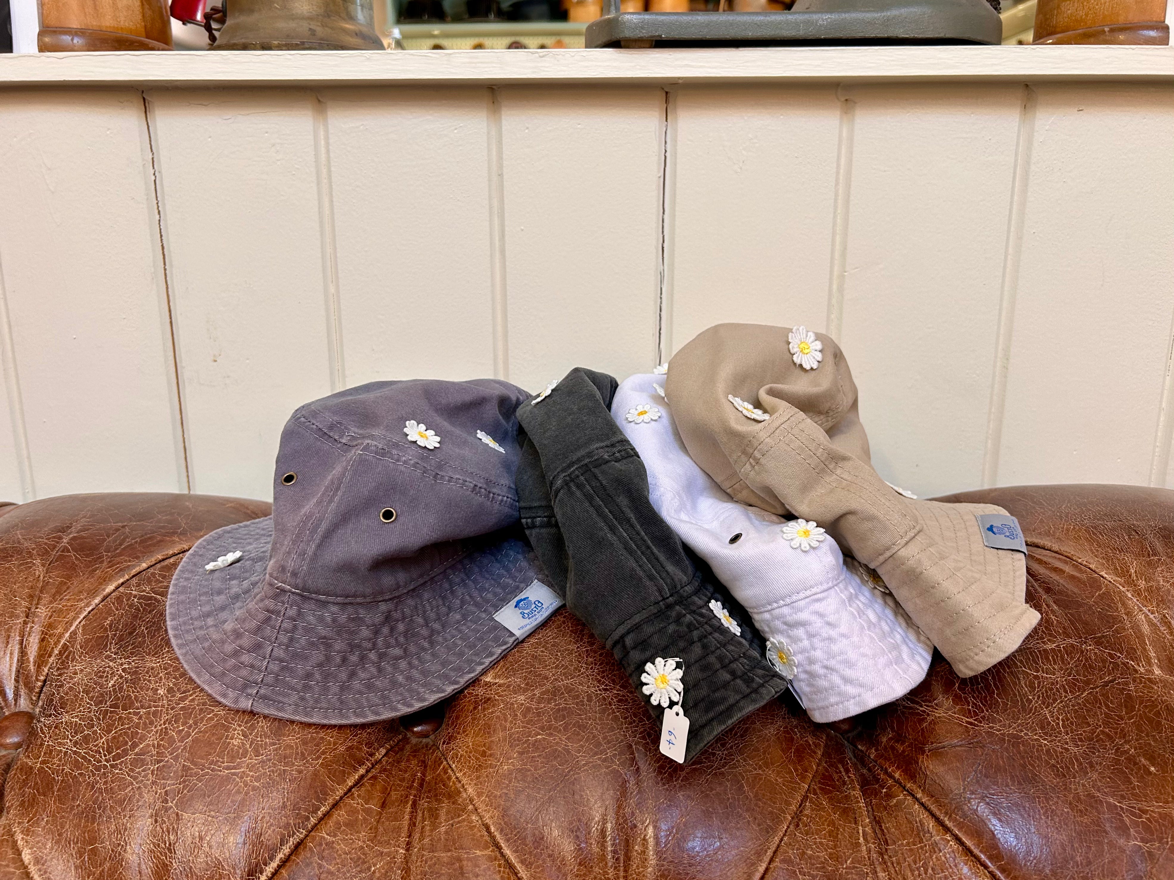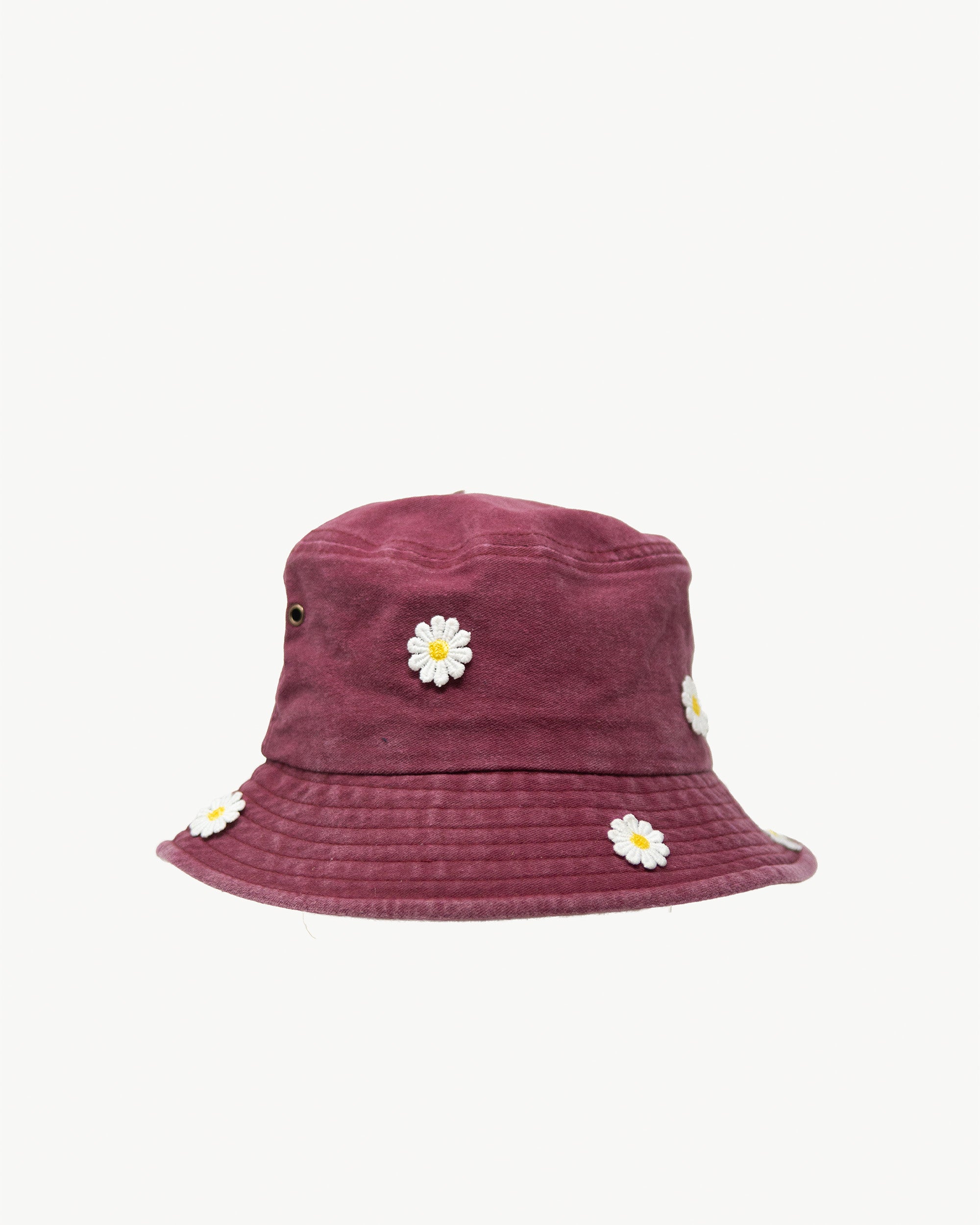 Playful, sun-soaked, and easygoing—this daisy bucket hat brings a little joy to every outfit. Made from 100% cotton for breathable comfort, it features embroidered daisies scattered across the crown and brim. Whether you’re wandering through Topanga or dressing up your beach-day look, it adds charm without trying too hard. Soft structure, timeless shape, and a wink of flower power.