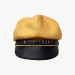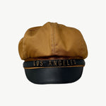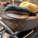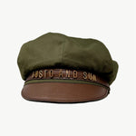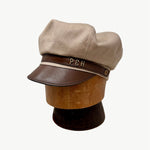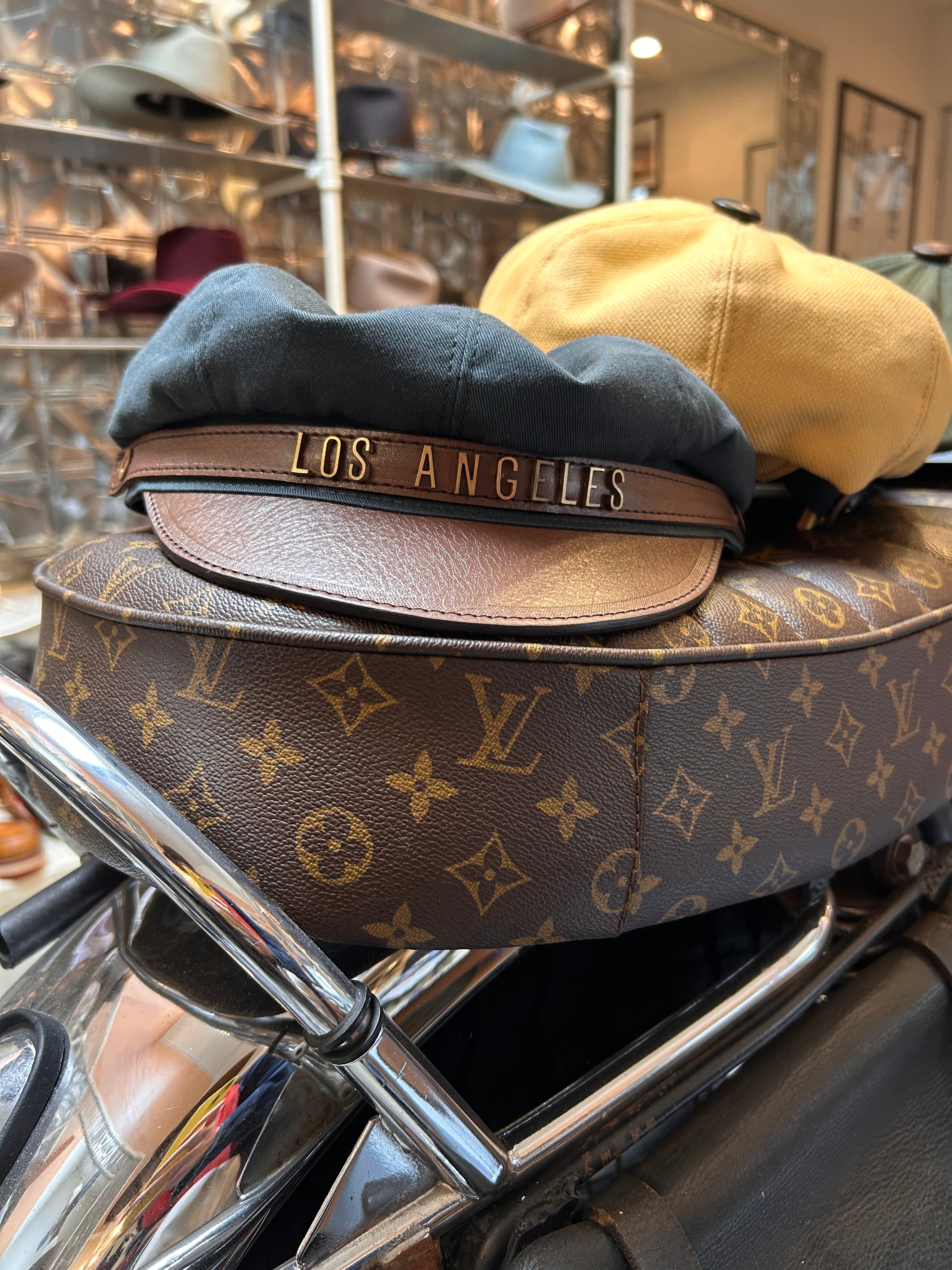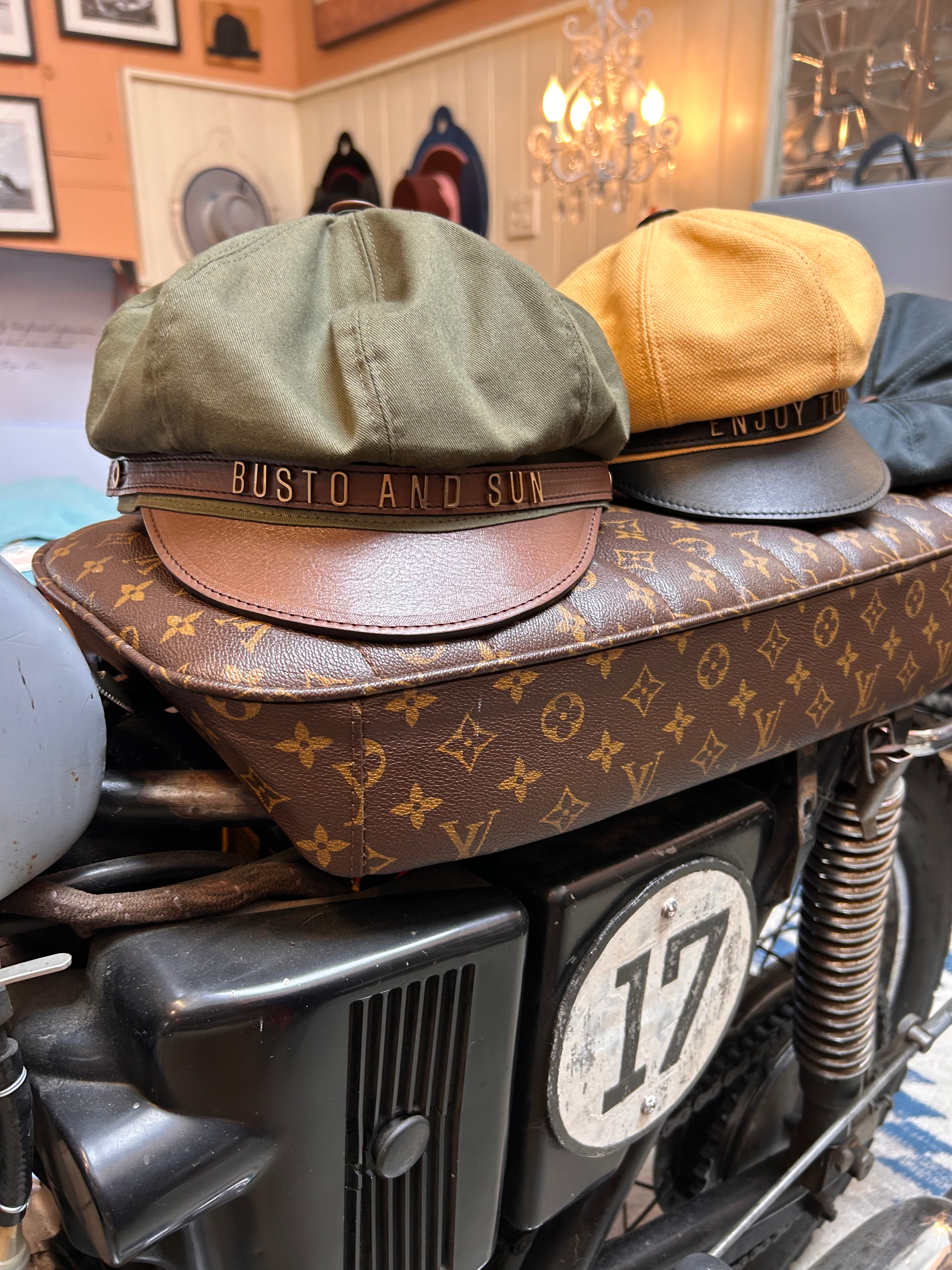 Crafted from heavyweight cotton canvas and trimmed in smooth leather, the hat balances grit and refinement. Across the back, a bold arc of individually hand-cast brass letters makes this piece unmistakably one-of-one. The shape nods to workwear tradition and post-war American rebellion—built for the ones who never needed permission.